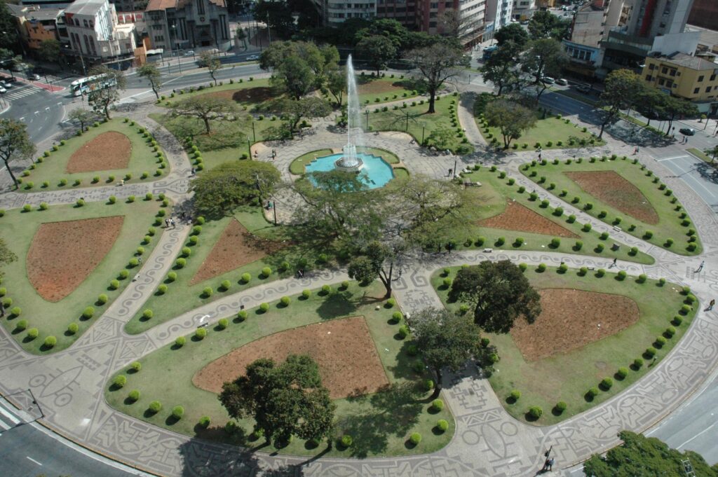 Projetada pelo arquiteto Érico de Paula e inaugurada em 1936, a Praça Raul Soares é um marco do urbanismo belo-horizontino. Seu traçado circular, em meio ao padrão ortogonal da cidade, simboliza o encontro entre quatro avenidas: Amazonas, Olegário Maciel, Bias Fortes e Augusto de Lima.