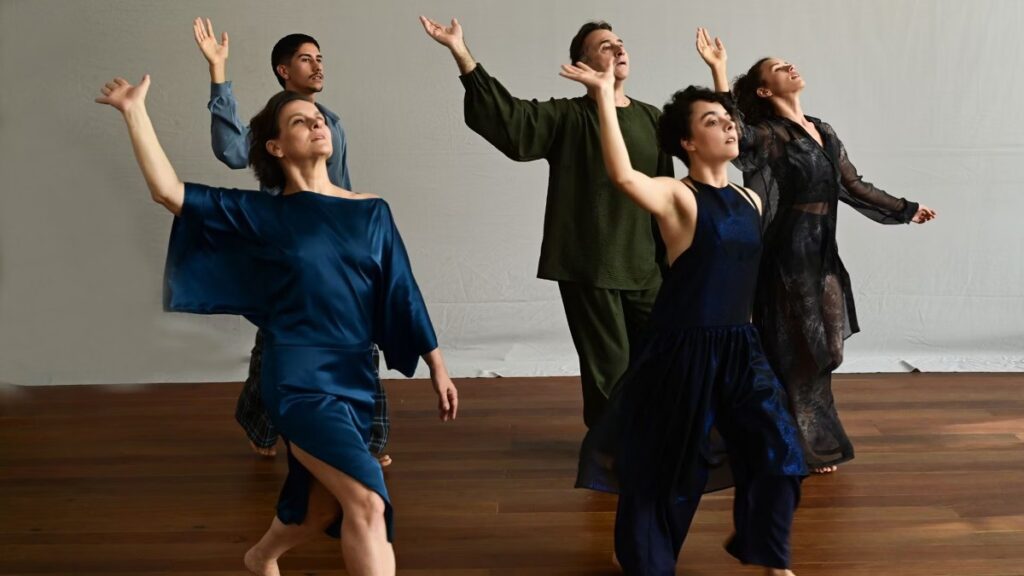 Em cena, os corpos constroem paisagens afetivas que transitam entre contenção e fluidez, silêncio e explosão, opacidade e brilho, em constante diálogo com a trilha sonora original de Federico Puppi, que cria camadas sonoras integradas à matéria coreográfica.